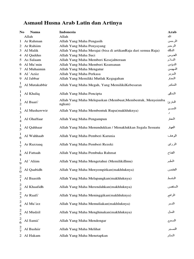 Tulisan Arab Asmaul Husna Dan Artinya Pdf