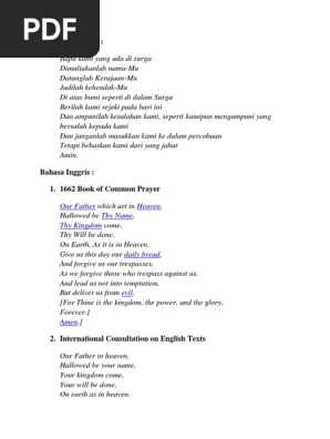 Doa Bapa Kami Dalam Bahasa Inggris Bahasa Jawa
