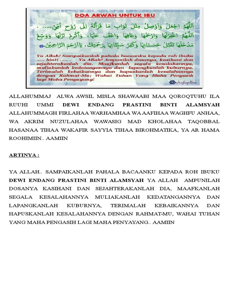 Doa arwah untuk ibu. Berikut adalah doa untuk arwah ibu. Tariq advocate 1992307 views. Perkara ini berdasarkan hadis rasulullah daripada abu.