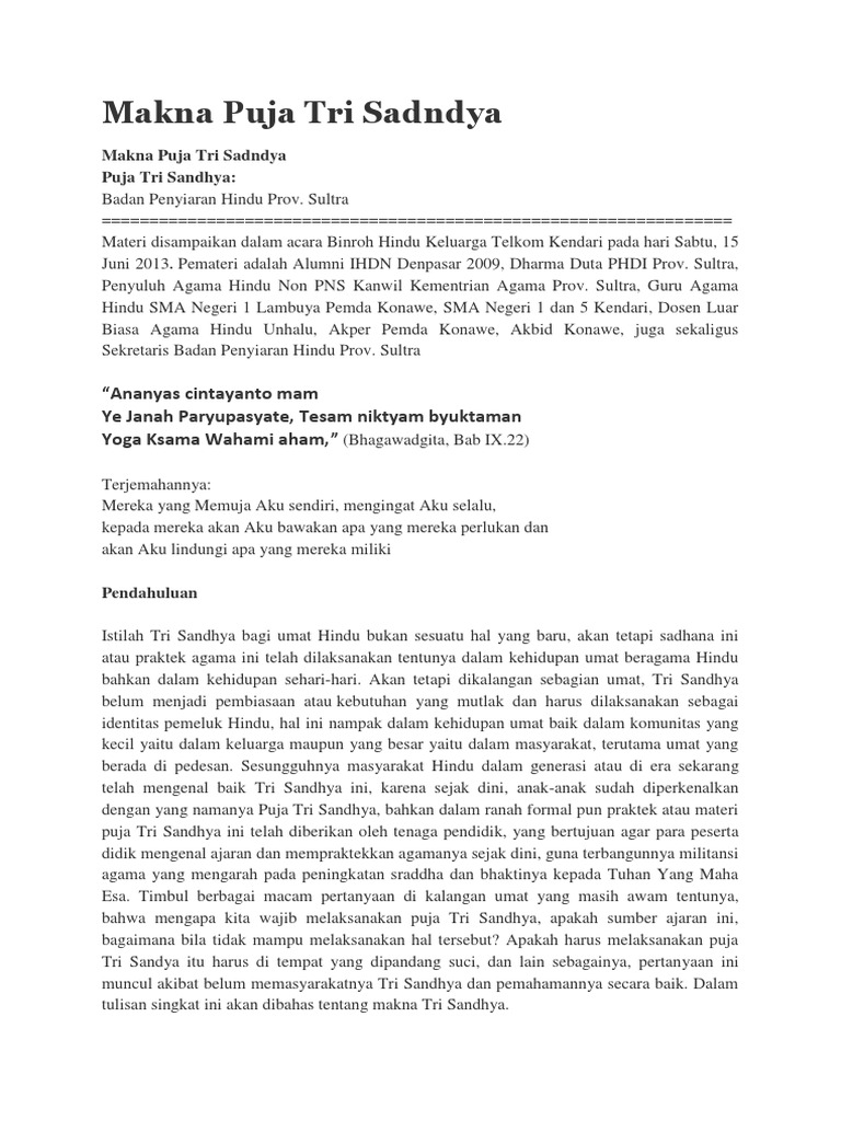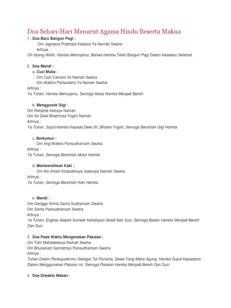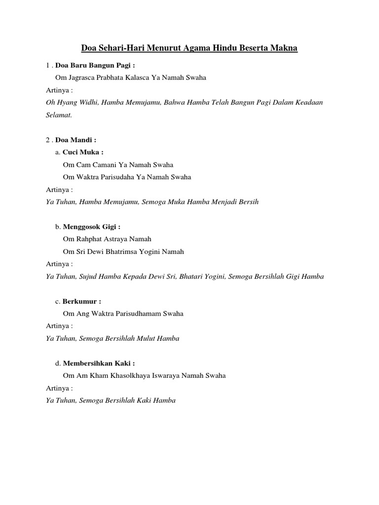 Doc Doa Sehari Hari Menurut Hindu Doa Sehari Hari Menurut